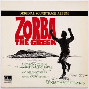 Mikis Theodorakis (1925-2021) byl celosvětově uznávaný řecký skladatel, textař, dirigent, také politik. Symfonie, komorní díla, balety, populární písně, filmová hudba. Jeho nejznámější a nejpopulárnější je hudba k filmu Zorba The Greek (česky „Řek Zorba“) z roku 1964. Kasovní trhák byl uveden do kin koncem roku 1964, soudtrack vyšel v roce 1965. Instrumentální skladby (doplněné o monology z filmu) zlidověly po celém světě. Hlavně kultovní „Zorba´Dance„, který excelentně předvádí Anthony Quinn (1915-2001) a Alan Bates (1934-2003). Tanci se říká „sirtaki“. Skladba se stala synonymem řecké kultury a melodii nahrálo obrovské množství hudebníků z celého světa. Na albu zní buzuki, housle, akordeon, flétny, buben toubeleki. V době vojenské junty (1967-1974) byla Theodorakisova hudba v Řecku zakázána. Během svého života několikrát přežil svou smrt a zemřel na zástavu srdce v 96 letech. Po jeho smrti byly v Řecku vyhlášeny tři dny národního smutku.