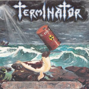 Jednu z těch úplně nejlepších československých trash metalových desek nahrála nenápadná kapela z moravského Bzence. Terminator. Zapamatujte si je a zapomeňte na Arakain. Vznik koncem roku 1987, koncertovat začali koncem roku 1989. Na výběrovce Death Metal Session (1991) mají skladbu Pravděpodobnost zániku. Album má sice anglický název, ale zpíváno je česky s nezaměnitelným jihomoravským dialektem. S naprostým přehledem srovnatelné s tehdejší světovou trash metalovou extraligou (Overkill, Sepultura, Iced Earth, Cannibal Corpse..). Výbornou práci odvedl producent Miloš „Dodo“ Doležal. Kytarista Luděk Zelinka (1970-2008) z kapely odešel v roce 1992. Ta nahrála ještě desku Plugged! (1994) a dál se o nich moc neví. Probability Of Doom čeká od roku 1991 (tedy dlouhých 32 let) na reedici. Dnes jsem LP oprášil a na gramofonu ještě chvíli vydrží. Parádní deska!