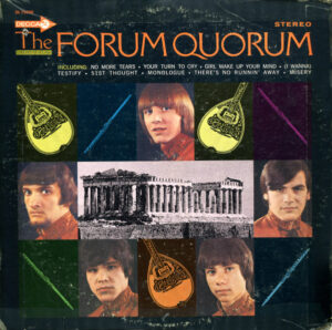The Forum Quorum byla neznámá newyorská teenagerská jednodesková kapela, která existovala v letech 1968-1969. Složení bylo americko-italsko-řecké, což už napovídá obal alba s Akropolí. Garage rock, proto psych rock-pop s buzuki, výrazným organem, flétnou a slyšitelnými středomořskými vlivy. Deset vlastních písní doplňuje cover The Parliaments (I Wanna) Testify. Deska byla komerčním propadákem a kapela se rozpadla. Nepomohla jim ani účast ve filmu, ani několik vystoupení v Mike Douglas Show. Každopádně zajímavá exkurze do americké hudby konce 60. let.