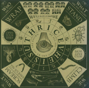 Thrice je americká kapela z města Irvine, kde ji založili v roce 1998 tehdy spolužáci ze střední školy Dustin Kensrue (zpěv, kytary) a Teppei Teranishi (kytary). Hrají EMO, post hardcore, indie rock, experimentují. Mezi lety 2011-2015 si dali pauzu a nyní jsou stále aktivní. Jsou známí tím, že část výtěžku z prodeje alb věnují charitativním organizacím. Jejich majstrštyk slaví letos 20 let od prvního vydání a jmenuje se Vheissu. Čtvrté album Thrice přineslo oproti dřívějšku dost radikální změnu. Změna producenta. Známý Steve Osborne (např. Suede, Elbow, Placebo, Happy Mondays). Jsou tu klávesy, piano, syntezátory, hammondky, elektronika, zvonkohra, smyčcové aranže, duchovní, biblické a abstraktní texty, atmosférický zvuk, občasné hymnické refrény. Nic to neubralo na intenzitě a údernosti. Úvodní Image Of The Invisible zůstává dodnes jejich největším hitem. The Earth Will Shake je skoro post-metal, For Miles je poctou Milesi Davisovi s úvodním klavírním motivem, až po závěrečnou baladickou Red Sky. Ve svém žánru a ve své době nemělo album Vheissu konkurenci. Úžasné!
